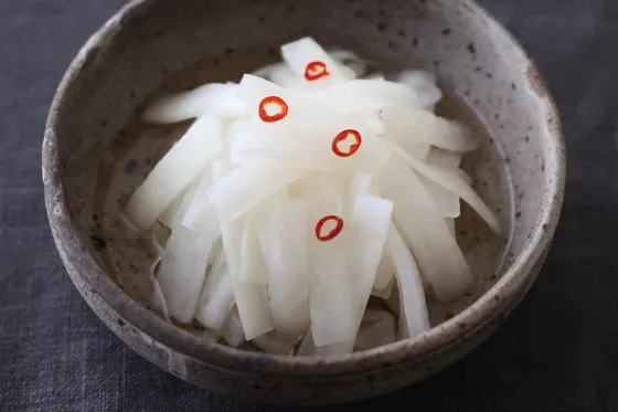 シンプルな配合の甘酢漬けだからこそ、大根の食感やみずみずしさが引き立ちます。