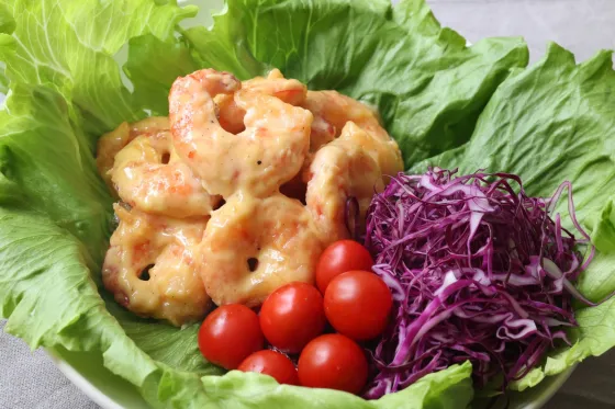 甘酸っぱいマヨソースが絶妙に絡み、エビの旨みを引き立てます。