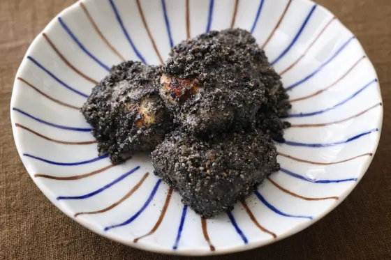 香ばしく焼いた餅を湯にくぐらせ、黒ごまの衣をまとわせる胡麻餅のレシピです。