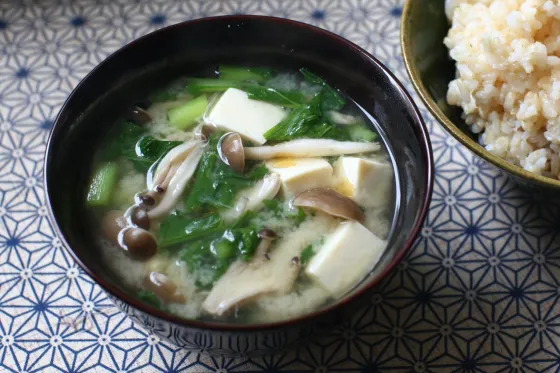 かぶの葉の香りとしめじの旨味が調和した、やさしい味噌汁です。