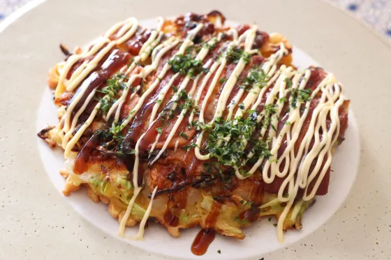 小麦粉が多いお好み焼きに比べて重たくなりにくく、キャベツの甘みや豚バラの旨味も感じやすい、軽い食べ心地に仕上がるのが特徴です。