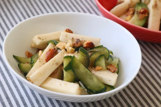 レモンのほどよい酸味とナッツの香ばしさが、長芋ときゅうりの爽やかな味わいをより引き立ててくれます。