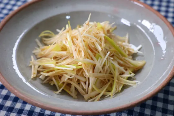 細く切った長ネギをさっと和えるだけで、香りよくさっぱりとしたネギサラダが作れます。