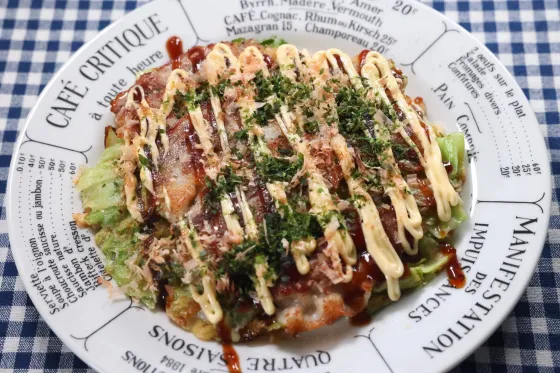 レタスをたっぷり使ったお好み焼きは、軽くて食べやすく、いつものお好み焼きとはまた違った美味しさが楽しめる一品です。