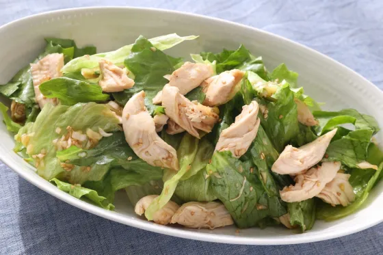 しっとりゆでたささみとシャキッとしたレタスを合わせた、軽やかな一品です。