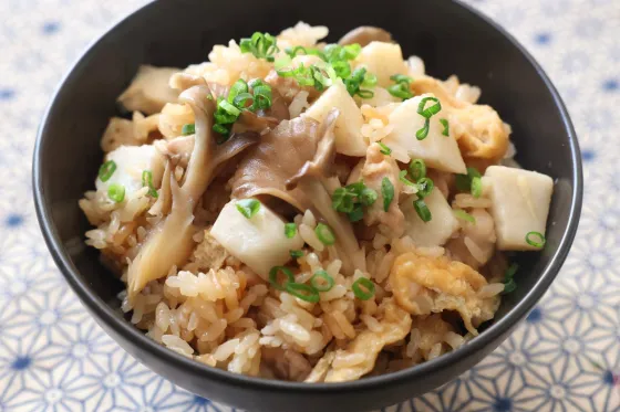 また、具材を順番に重ねることで鶏肉や舞茸の旨みが炊いている間に自然と広がり、里芋も水分が出すぎず、食感よく仕上がります。