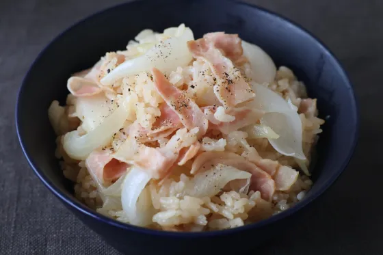くし切りにした新玉ねぎをたっぷり使い、ベーコンの旨味とバターのコクを合わせることで、誰でも失敗なく美味しく作れます。